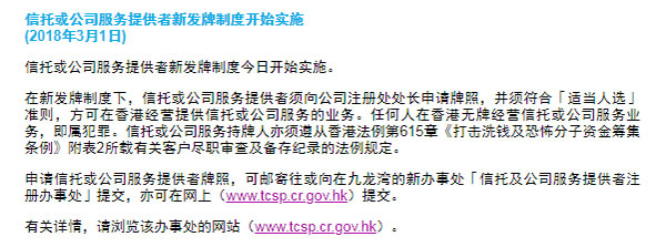 在新機制下,信托或公司服務(wù)提供者須從公司注冊處獲得牌照,并于在港提供信托或公司服務(wù)前通過“任職資格”測試。